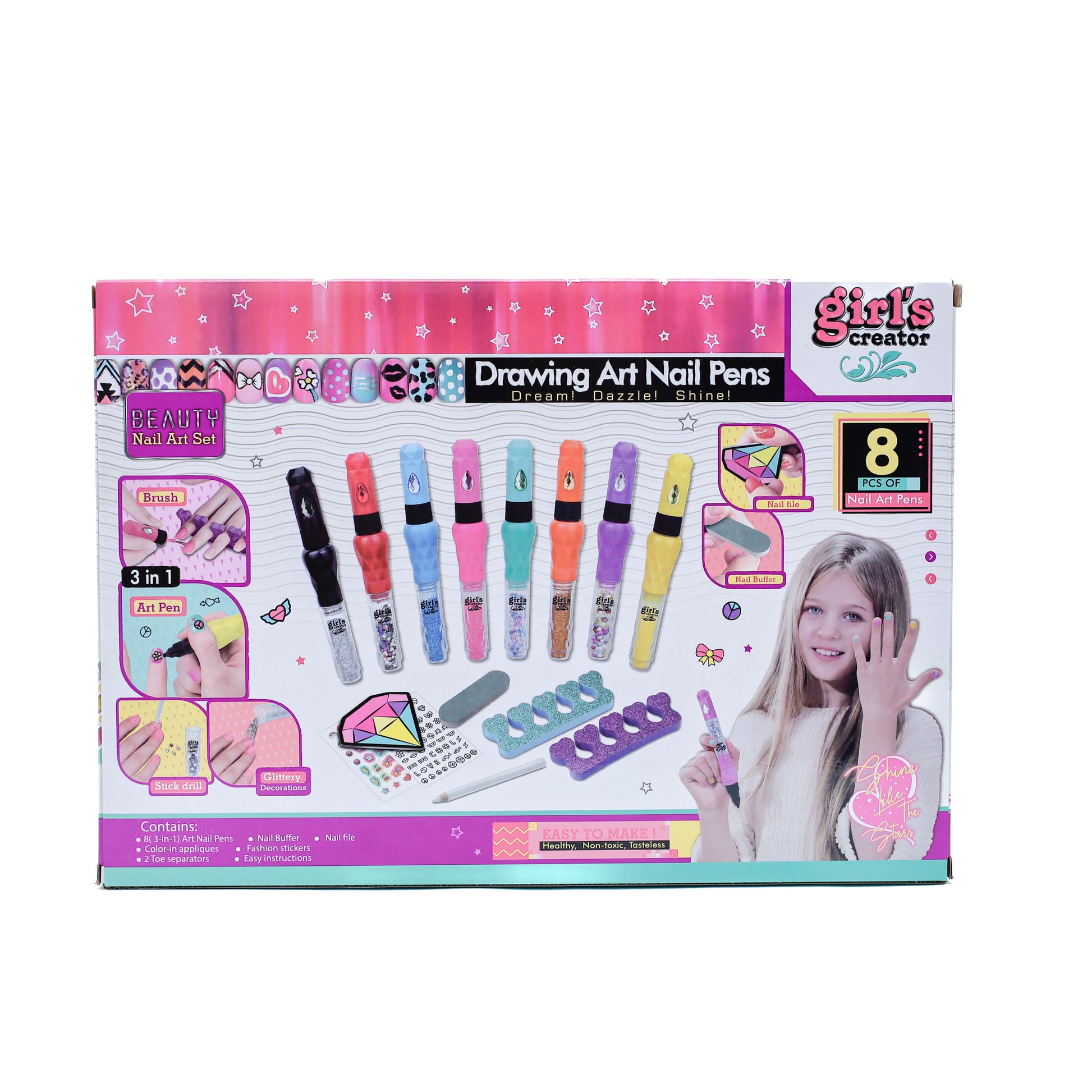 For kids who love to sketch and shine, this nail pen set includes precision pens with multiple color options for detailed nail drawing. Bonus stickers and a practice palette make it easy to learn and master the art of nail design.