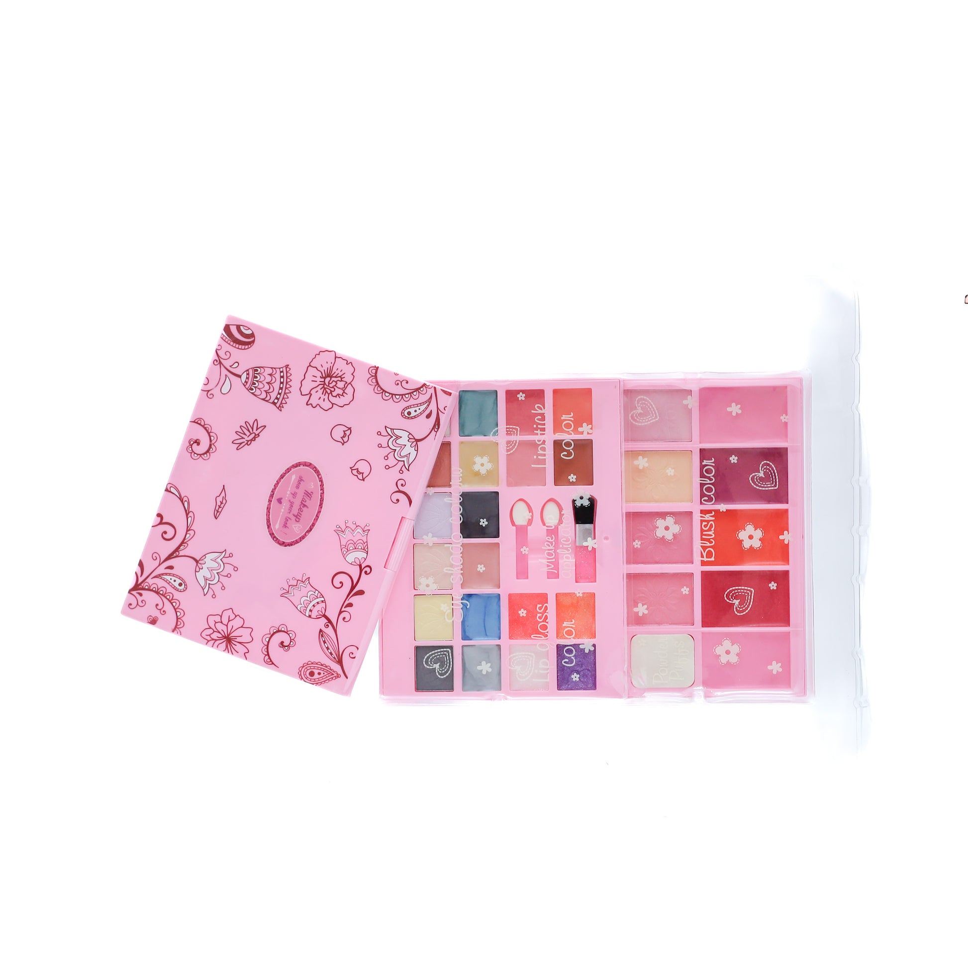 The Make-up Palette is a vibrant, all-in-one cosmetic set for kids, offering an array of eyeshadow, blush, and lip gloss in a fold-out case. Perfect for role play or beauty fun, it promotes creative expression and self-confidence in a safe and playful way.
